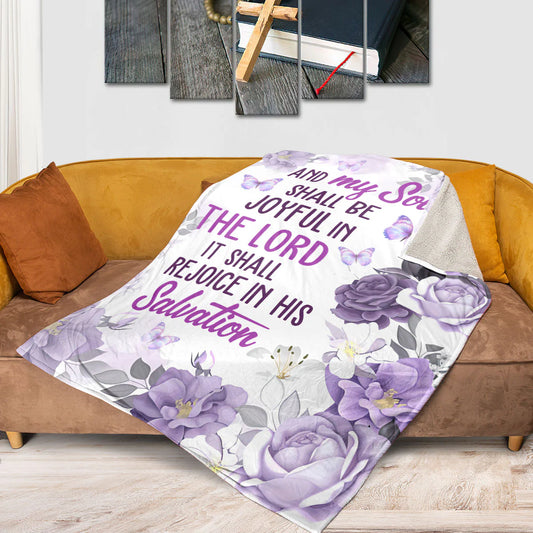 Christian Fleece Blanket | Flower And Butterfly | Psalm 35:9 | My Soul Shall Be Joyful In The Lord
