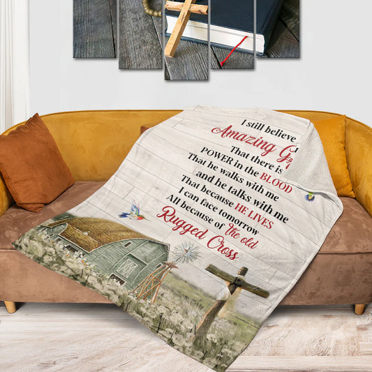 Christian Fleece Blanket, Amazing Grace Old Rugged Cross Faith Quote