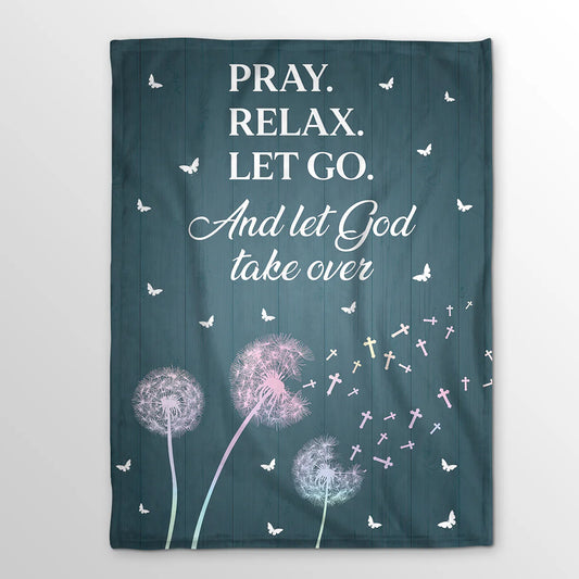 Christian Fleece Blanket, Pray Relax Let Go Quote Blanket, Inspirational Faith Gift