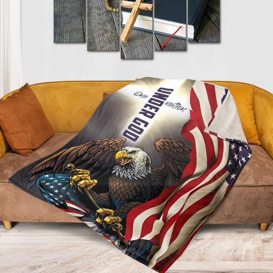 Christian Patriotic Fleece Blanket, One Nation Under God Eagle Flag