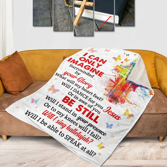 Christian Fleece Blanket, I Can Only Imagine Jesus Cross Faith Gift