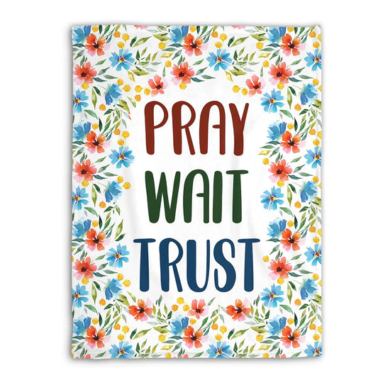 Christian Fleece Blanket, Pray Wait Trust Floral Faith Quote