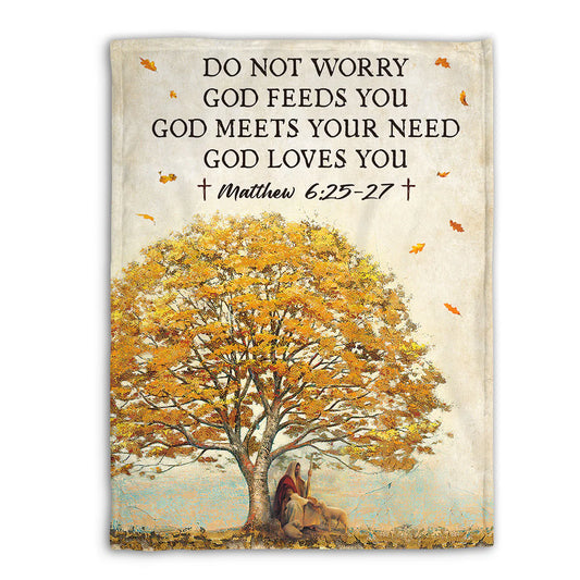 Christian Fleece Blanket, Do Not Worry Bible Verse Matthew 6:25–27