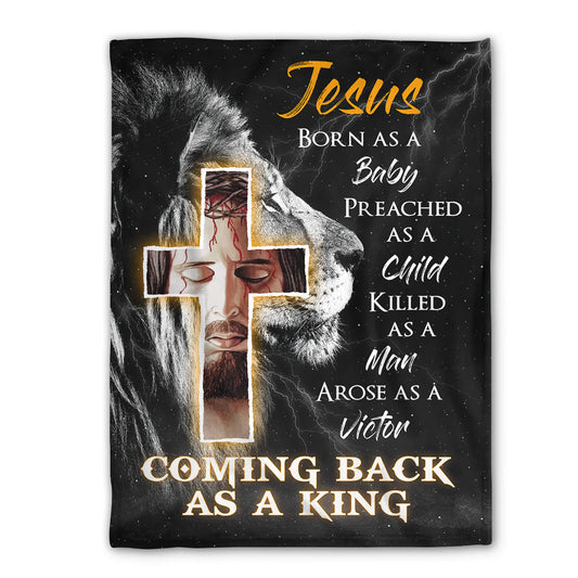 Christian Fleece Blanket, Jesus Lion Cross Faith Quote Blanket