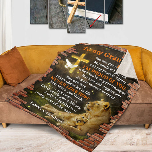 I Will Be Behind You Every Step Of The Way - Unique Lion Fleece Blanket For Grandson