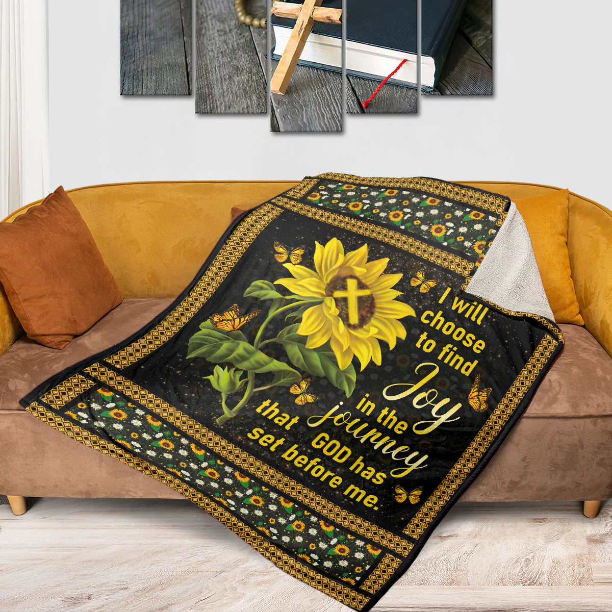I Will Choose To Find Joy In The Journey | Sunflower And Cross | Stunning Fleece Blanket