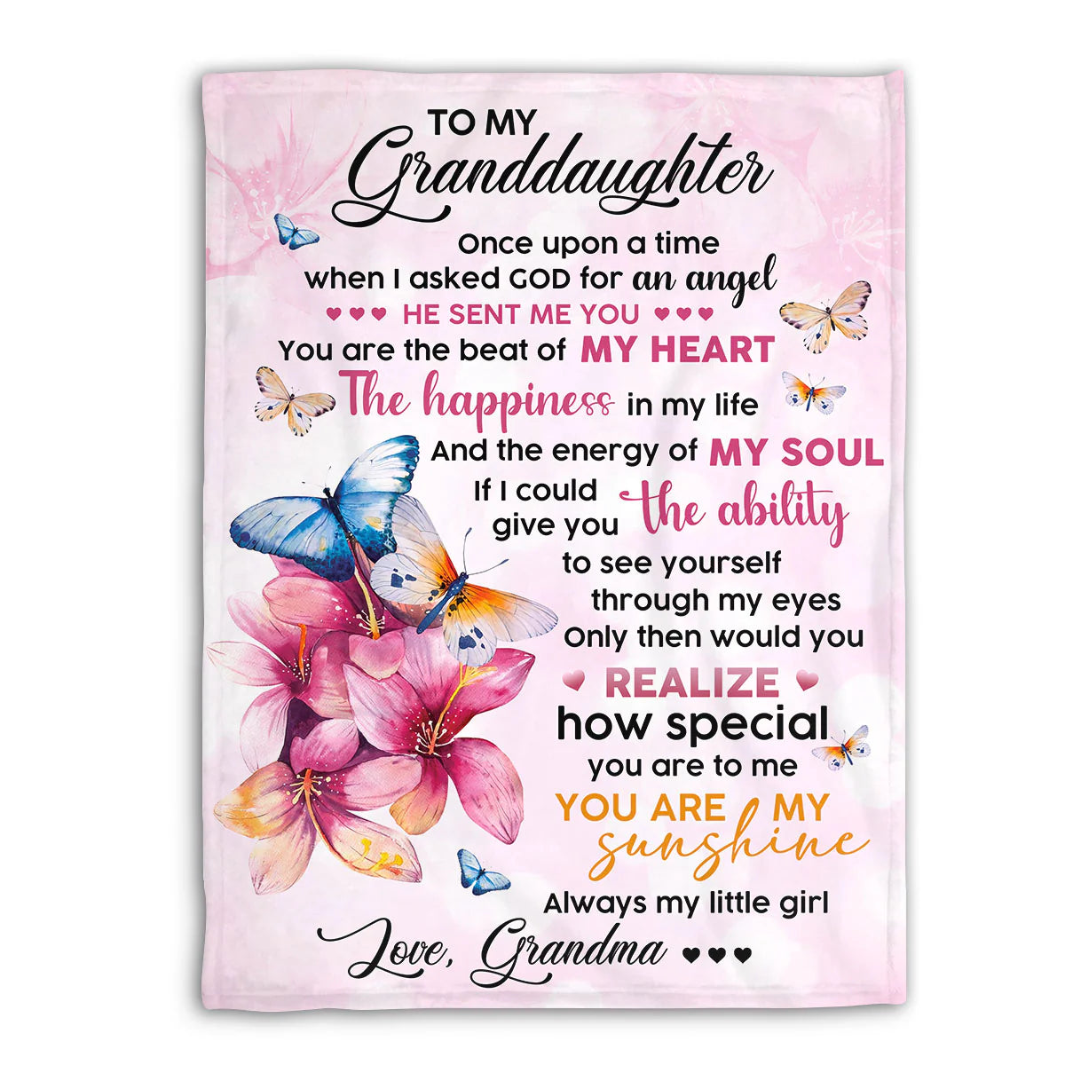 To My Granddaughter Christian Fleece Blanket, Butterfly Angel Gift from Grandma